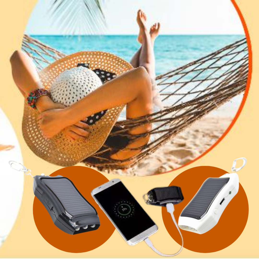 O carregador solar Infinity Ultra, possui um painel solar de alta eficiência, capaz de armazenar energia para carregar até 5 vezes a bateria
