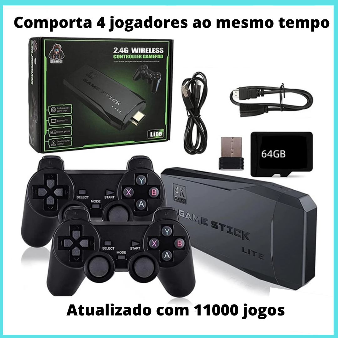 NOVO VÍDEO GAME STICK 4K HD COM CONTROLES SEM FIO 11.000 JOGOS